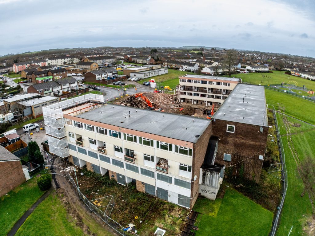 Demolition work has now begun at Tintagel Close in Keynsham, marking a major milestone in a regeneration contract procured through Westworks.